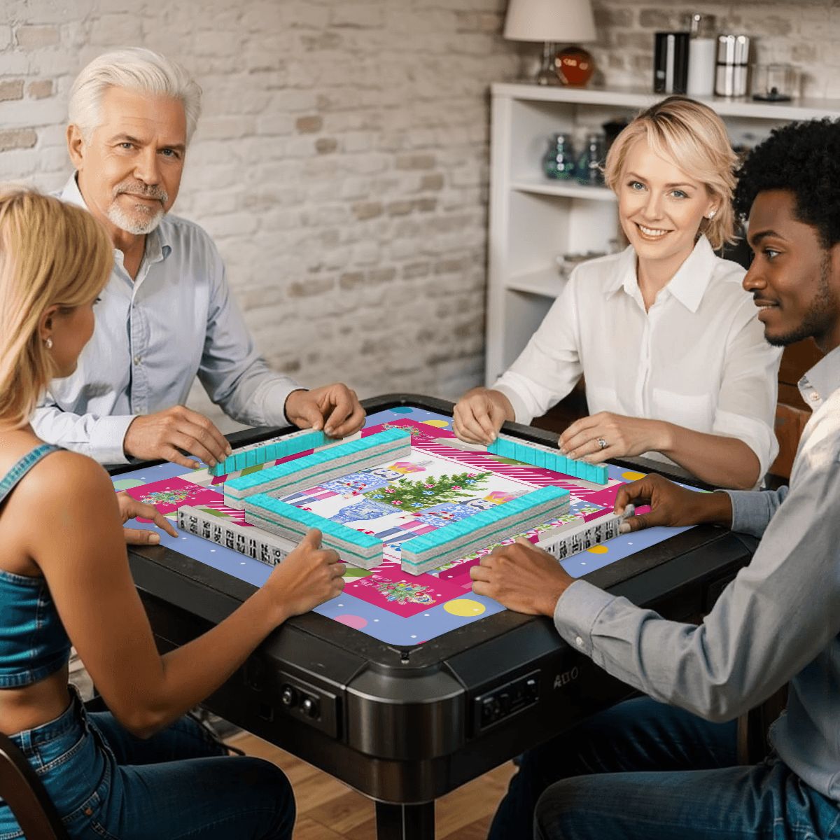 Bring festive East-meets-West charm to your holiday gatherings with this whimsical Chinoiserie Christmas Mahjong Mat! Featuring delightful Candy Man and Nutcracker designs, this playful piece celebrates the season with a sophisticated twist. Perfect for game nights, table displays, or as a conversation-starting gift, it blends traditional mahjong aesthetics with jolly holiday spirit. Whether you're a mahjong enthusiast or simply love unique seasonal décor, this mat adds a splash of color and personality to your celebrations. A fun fusion of cultures that spreads joy and laughter all season long!