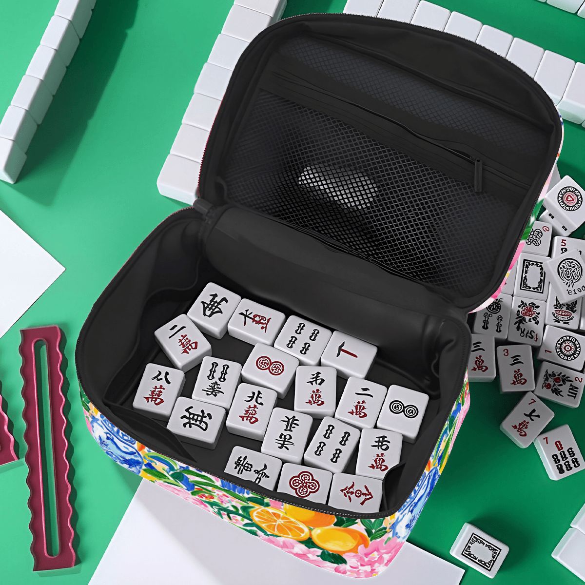 Bring the game anywhere with this vibrant Citrus Sunny Chinoiserie Floral Portable Mahjong Tile Bag! Featuring cheerful citrus hues and delicate floral patterns inspired by traditional chinoiserie design, this stylish bag keeps your tiles organized and protected. Perfect for game nights at home, trips to friends, or tournaments on the go. The durable construction and convenient carrying handles make transporting your mahjong set a breeze. Whether you're a seasoned player or just starting out, this charming bag adds a pop of color and personality to your gaming experience.