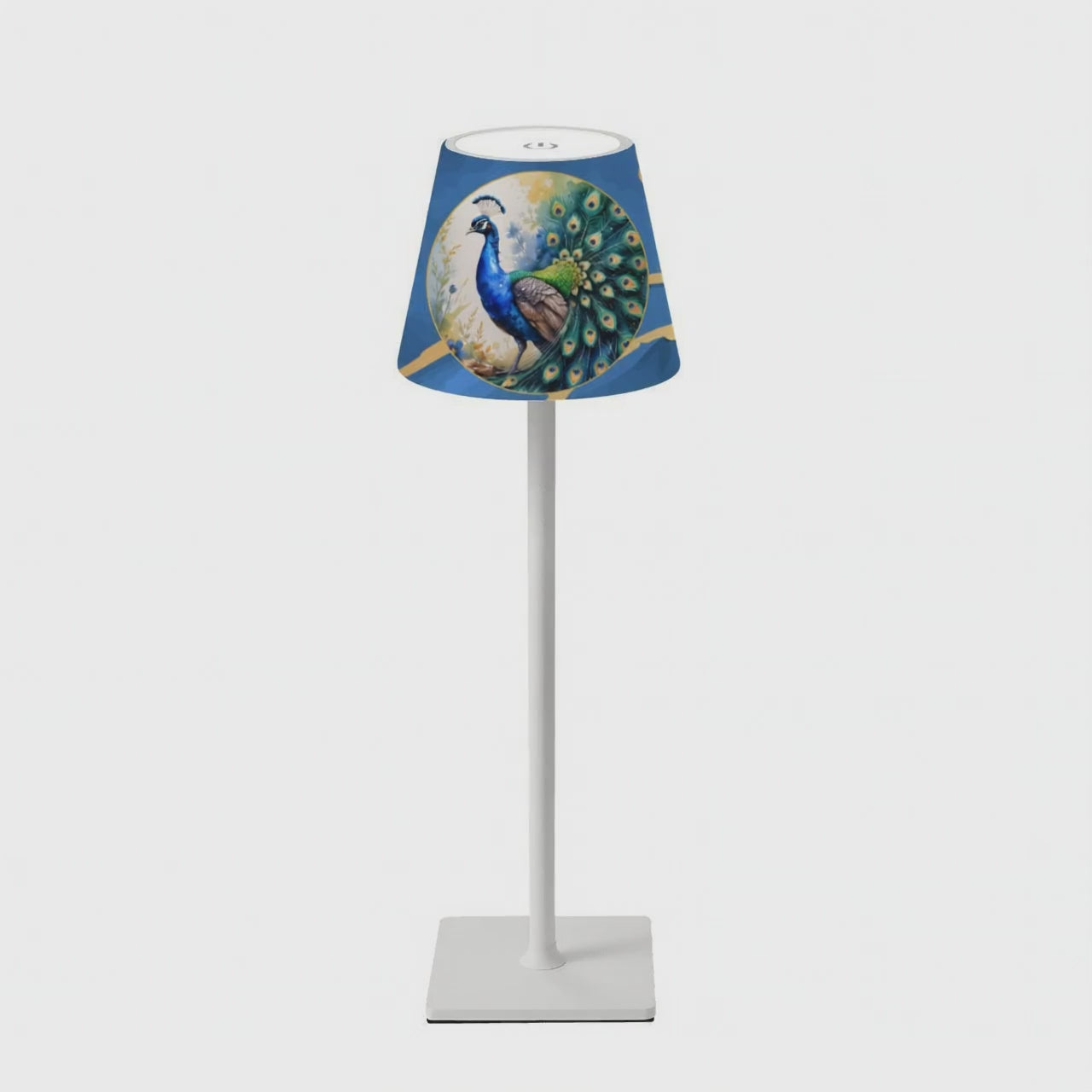 Floral Blue Marbled Peacock Gold Accents, LED Cordless Table Lamp