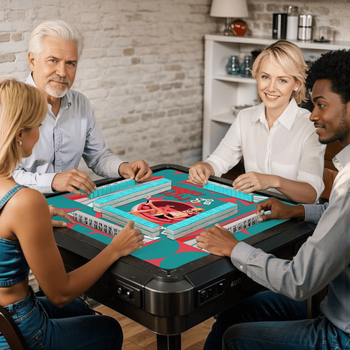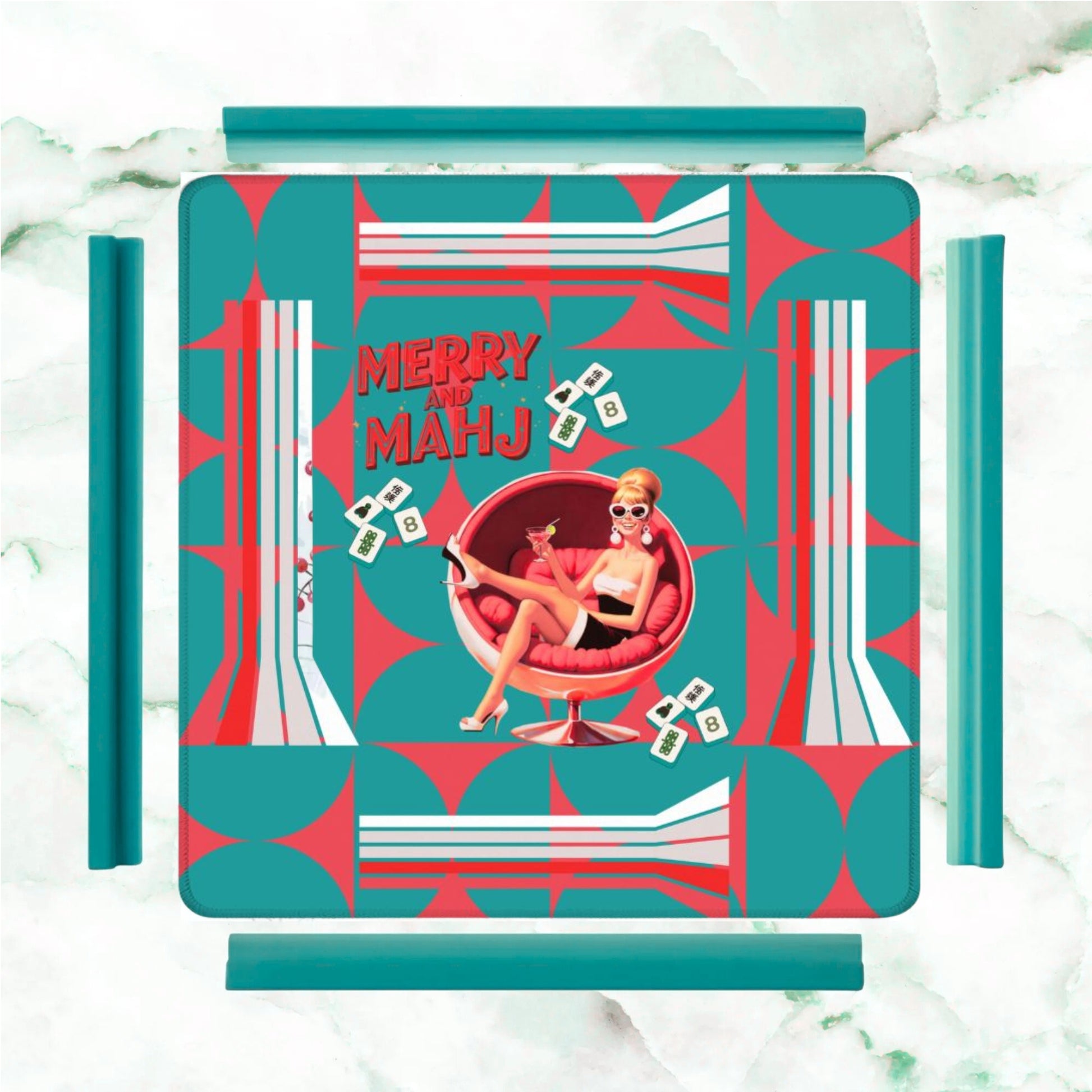 Celebrate the holidays with a playful twist using the Mahjong Christmas Mat! Featuring a vintage nostalgic design with a merry party girl, this mat adds charm and fun to any festive gathering. Perfect for Mahjong lovers looking to infuse seasonal spirit into their game nights. Let the good times roll with a touch of retro holiday cheer!