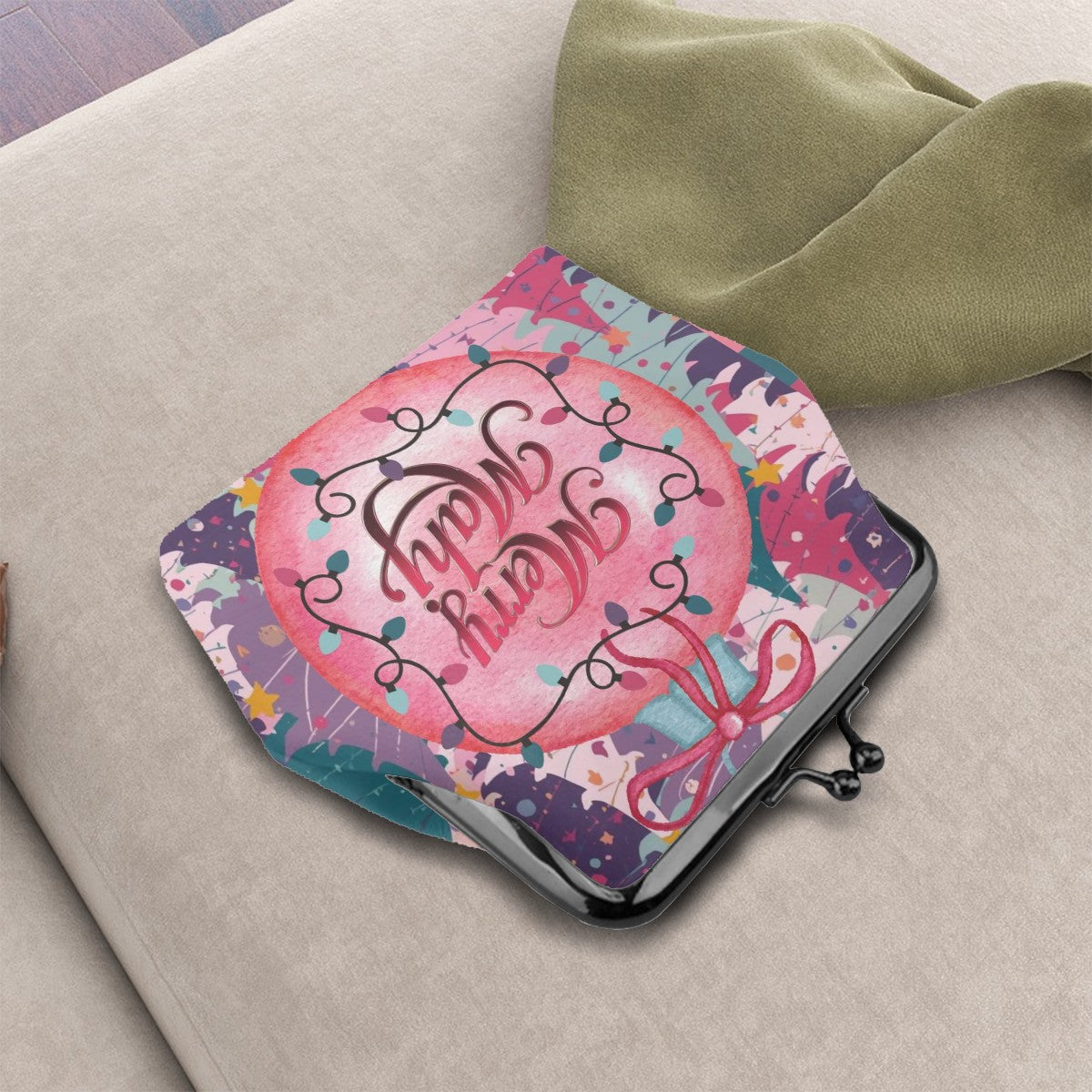 Mahjong Christmas Whimsical Merry Mahj Women's Leather Kiss Lock Coin Purse