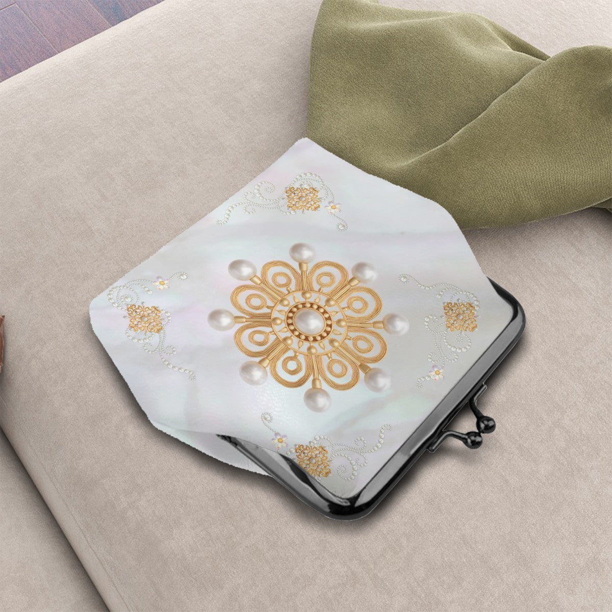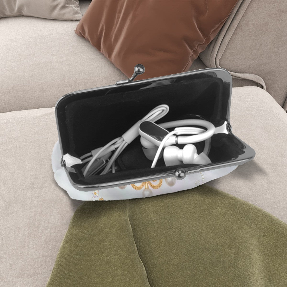 Carry your coins in style with this charming vintage-inspired kiss lock coin purse! Crafted from supple leather and adorned with a shimmering mother-of-pearl brooch, it's the perfect blend of retro elegance and practical fun. The satisfying snap closure keeps your change secure while the ornate clasp adds a touch of old-world glamour to your everyday essentials. Whether you're a vintage enthusiast or just love a little extra sparkle, this petite purse is sure to turn heads and spark conversations wherever you go.