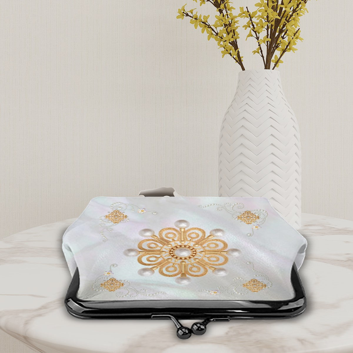 Mother Of Pearl Vintage Brooch Women's Leather Kiss Lock Coin Purse